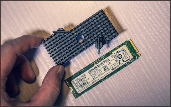 CPU 周围的供电电路上面也都覆盖了尺寸巨大的率散热片,两条内存上也都带有散热马甲,所以一体式水冷冷排风扇所带来的气流,也能为这些部件带来很好的被动散热效果。SSD硬盘也配了专门的散热片(三星自家的主控芯片发热确实严重),M.2接口的SSD还使用了免工具快拆卡扣固定,为将来的升级操作提供了便利。