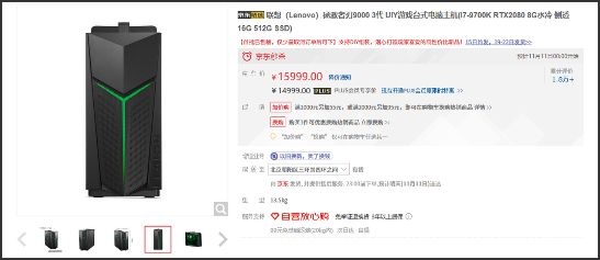 联想拯救者刃9000 3代游戏主机中的 i9-9900K + RTX2080 版本,在京东商城联想官方自营店铺首发,当时的价格为 16999元,如今正值双11购物狂欢节期间,双11当天这款机器也将再次以首发价格促销,随后将恢复至日常售价,错过悔恨一年。