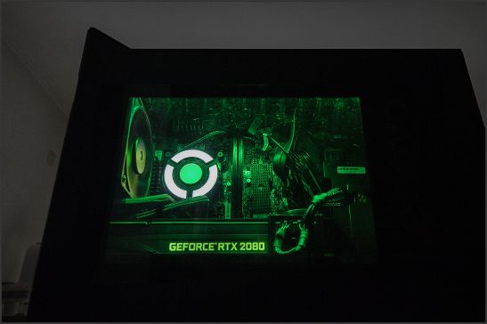 插上电源按下开关,当光效组件亮起来的时候,这台刃 9000 3代主机仿佛也就有了灵魂,毕竟通过侧透面板你就能够清楚的看到显卡顶部上面的发光字体「GEFORCE RTX 2080」,而笔者又是多么希望 CPU 上方水冷泵的灯光组件也能显示「INTEL-i9 9900K」几个字啊!如果你想达到更通透(光污染)的视觉效果,侧透面板上的洞洞格栅其实是可以拆卸的。